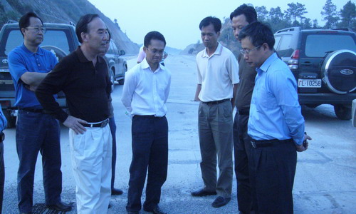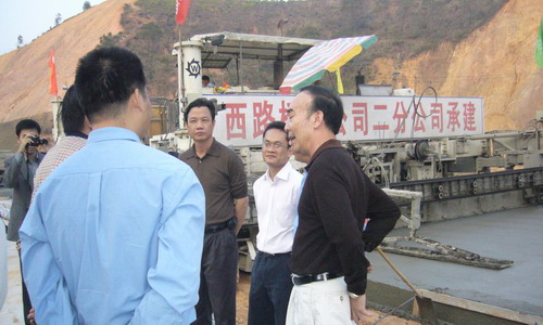 ͼ¶þ£º11ÔÂ16Èջƻª¿íÌü³¤Ò»ÐÐÔÚ¹ãÎ÷OBÊÓѶ¶þ·Ö¹«Ë¾³Ð½¨µÄÂ·ÃæB±êÊ©¹¤ÏÖ³¡Á˽âÉú²úÇé¿ö¡£