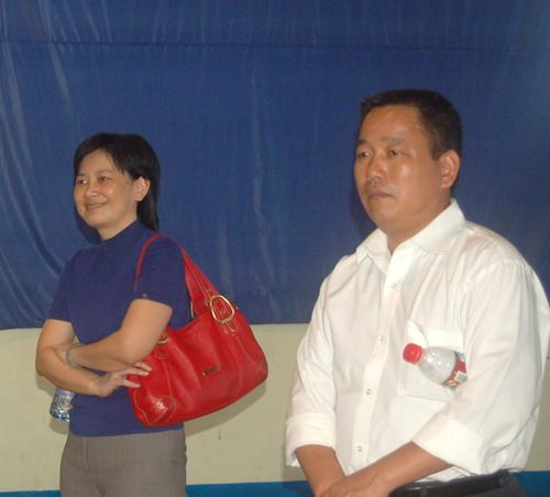 图二:集团公司党委副书记张友坐(右)、总公司党委书记何洁文(左)在寓目角逐