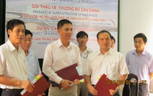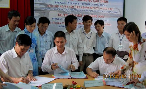 8月2日上午,由越南交通部第一建设工程总公司和中国广西OB视讯总公司组成的联营体,与越南岘港市交通厅下属的龙桥项目治理委员会在越南岘港市举行了岘港市跨韩江新桥(即龙桥)上部结构项目1B条约段签约仪式,加入仪式的有岘港市交通厅副厅长阮文章,龙桥项目治理委员会主任范长山,第一建设工程总公司总经理锦鸿来,广西OB视讯总公司副总经理庞博新、市场开发部部长劳鑫业等。签约现场喜气洋洋,各方代表都异常兴奋,配合期待着这一历史时刻的到来。