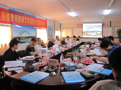 与会代表首先勘察了桥梁施工现场,通过评审会讨论建立了赣州市新世纪大桥缆索吊装系统专项技术计划评审专家组,并推选出中国铁路工程总公司教授级高工张健峰为专家组组长。专家组建立后,评审会听取了项目总工程师陈科关于《赣州市新世纪大桥缆索吊装施工专项技术计划》的汇报以及监理单位的审核意见,专家组认真审阅了相关资料,经过深入的讨论,各人认为该计划内容全面、技术计划总体可行,可用于指导后续缆索吊装施工。总公司照料唐柏石作为专家组成员,在会上作了重要降P蘑针对缆索吊装系统提出了修改建议。