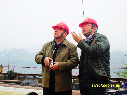 11月30日,在对项目部缆索吊装暨施工监控计划进行评审后,郑皆连院士心系合江长江一桥(波司登大桥)施工进展情况,集会一结束,就来到了大桥项目部,现场指导大桥的施工。总公司总工程师冯智、技术分中心主任陈辉煌以及分公司总工程师黄金文、技术分中心主任林峰陪同检查。