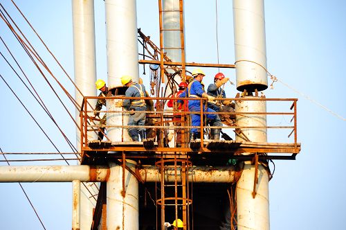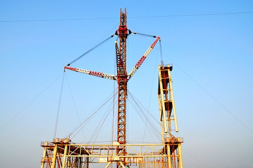 宜宾岸正在进行第二节段扣塔装置
