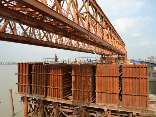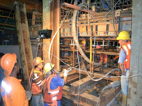 巴巴奥约河大桥共设计两个铰接段,划分位于P20-P21、P28-P29墩之间,铰接段是全桥技术难度最大、施工工艺最庞大的工程之一。项目领导班子多次开会研讨铰接段施工计划问题,项目技术总监姚青云组织技术人员到现场蹲点,利用种种资源查阅资料,加班加点编写铰接段施工计划,业主也从美国聘请铰接段施工方面的专家到项目进行指导。经过两个多月的精心组织和艰苦施工,2011年6月15日凌晨4时30分,Aquamarina工区铰接段砼浇筑施工顺利完成。