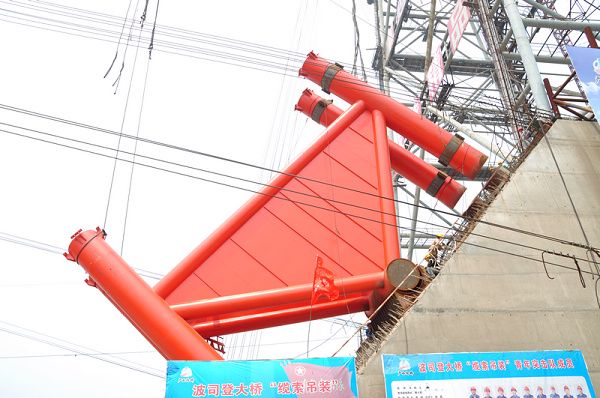 拱肋稳稳落入拱铰铰座,大桥首节段拱肋施工取告捷利