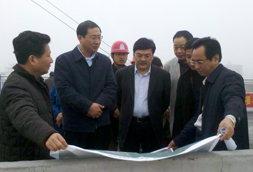 12月5日上午,赣州市市长冷新生一行驱车来到新世纪大桥施工现场视察事情,赣南大道指挥部指挥长严家春陪同视察。在新世纪大桥施工现场,赣南大道指挥长严家春向冷市长一行介绍了赣南大道及新世纪大桥的建设进度,冷市长强调,务必加大人力物力投入,确保元旦通车目标实现。(新世纪大桥 覃祖华 文/图)