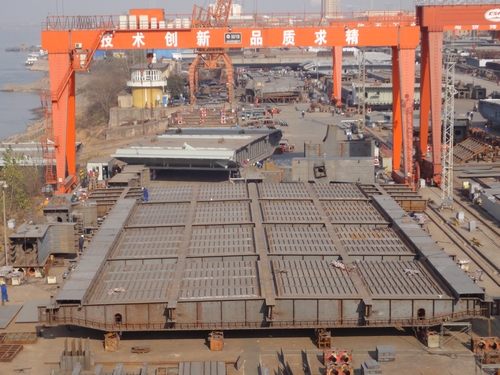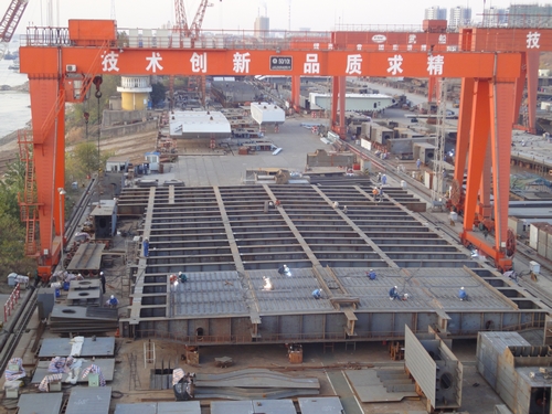 •     “江城”捷报传来 ,波司登大桥桥面首轮制作的格子梁在武船重工厂房通过验收 ,格子梁制作顺利进入快车道。
