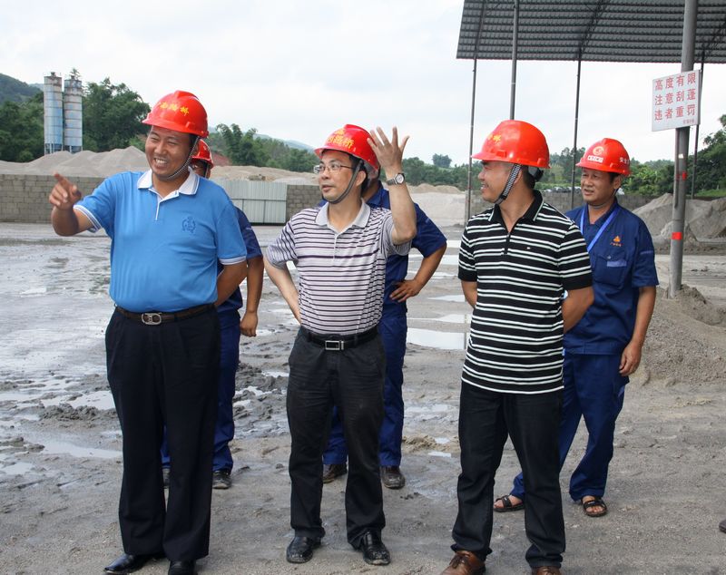 罗总经理用手捧起一把碎石,重复看事后,才满意地放下,同时还不忘嘱咐项目领导,一定要严把质量关,要重品质。
