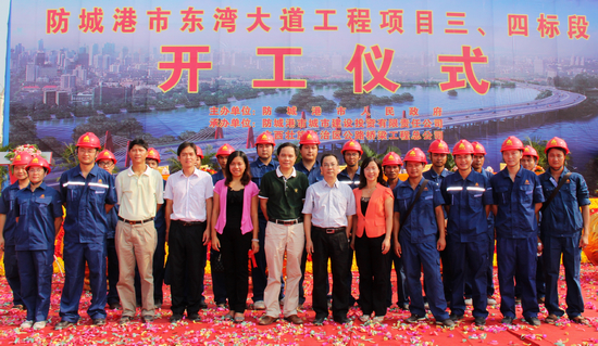 图一:防城港市东湾大道工程NO.3、NO.4标段举行隆重的开工仪式