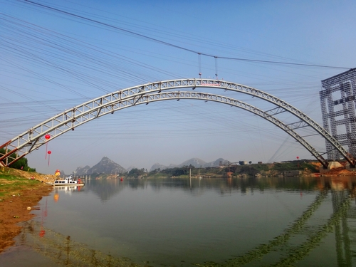 •       9月27日8时36分 ,贵港郁江特大桥下游最后一段拱肋准确就位 ,宣告大桥顺利合龙 ,项目取得旱季施工的阶段性胜利 。施工现场随风舞动的“广西OB视讯”彩旗与大桥遥相呼应 ,充满喜庆的局面 ,熏染现场的每个人 。