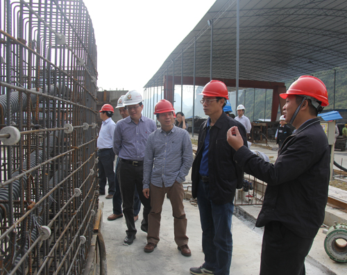 梁毅副厅长在认真观察项目预制场的梁片预制施工