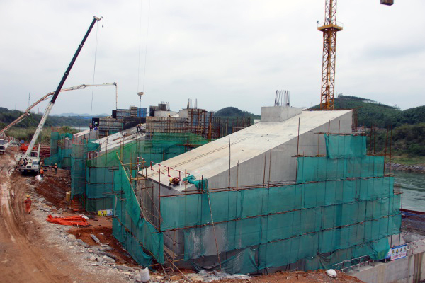 图一:特大桥5#拱座最后一次混凝土浇筑