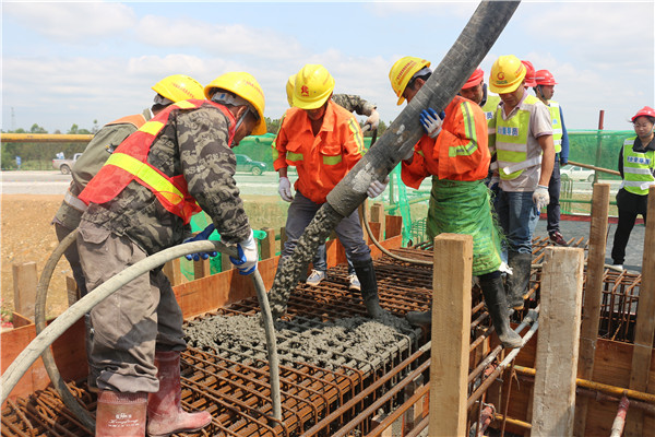 M匝道桥现浇梁右幅第一层混凝土的乐成浇筑,一方面得益于严密的施工组织,项目部多次召开施工工艺、宁静保畅等交底会,建立了宁静治理小组和质量治理领导小组,并体例了具体的应急预案。另一方面还得益于各部分之间的密切配合。浇筑前,安保部设置限高架、交通警察模型等,提醒过往车辆减速慢行,仔细排查宁静隐患,确保支架搭设稳固性、宁静防护板牢靠性及临时用电的正常性等。交管部认真布控水马、锥筒、水泥隔离墩、测速仪等临时交通设施,安排专职交通协管员指挥交通,包管过往车辆及参建人员生命宁静。试验室严格控制混凝土质量,包管工程质量。物资设备部配备好泵车、水车等,把关拌杂站发料、运料速度。综合办做好后勤效劳事情,包管饮用水、饭菜等实时供应。浇筑中,宁静治理小组和质量治理领导小组全程监控,发明问题实时解决。