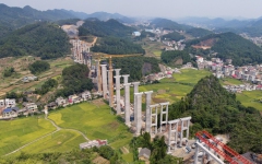 永新4标控制性工程——朱家湾2号桥完成首片T梁架设