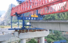 巴羌路一分部金法疏散式立交桥首片箱梁顺利架设