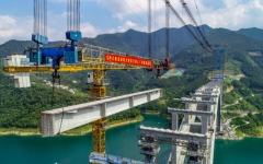 天峨龙滩特大桥拱上首片T梁乐成架设